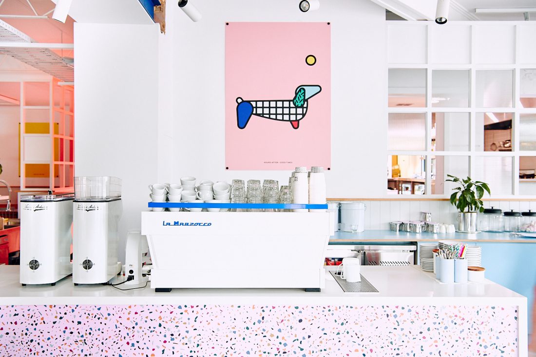 The interior feels fun and fresh, with its bubble-gum colour scheme and Californian beach vibes.